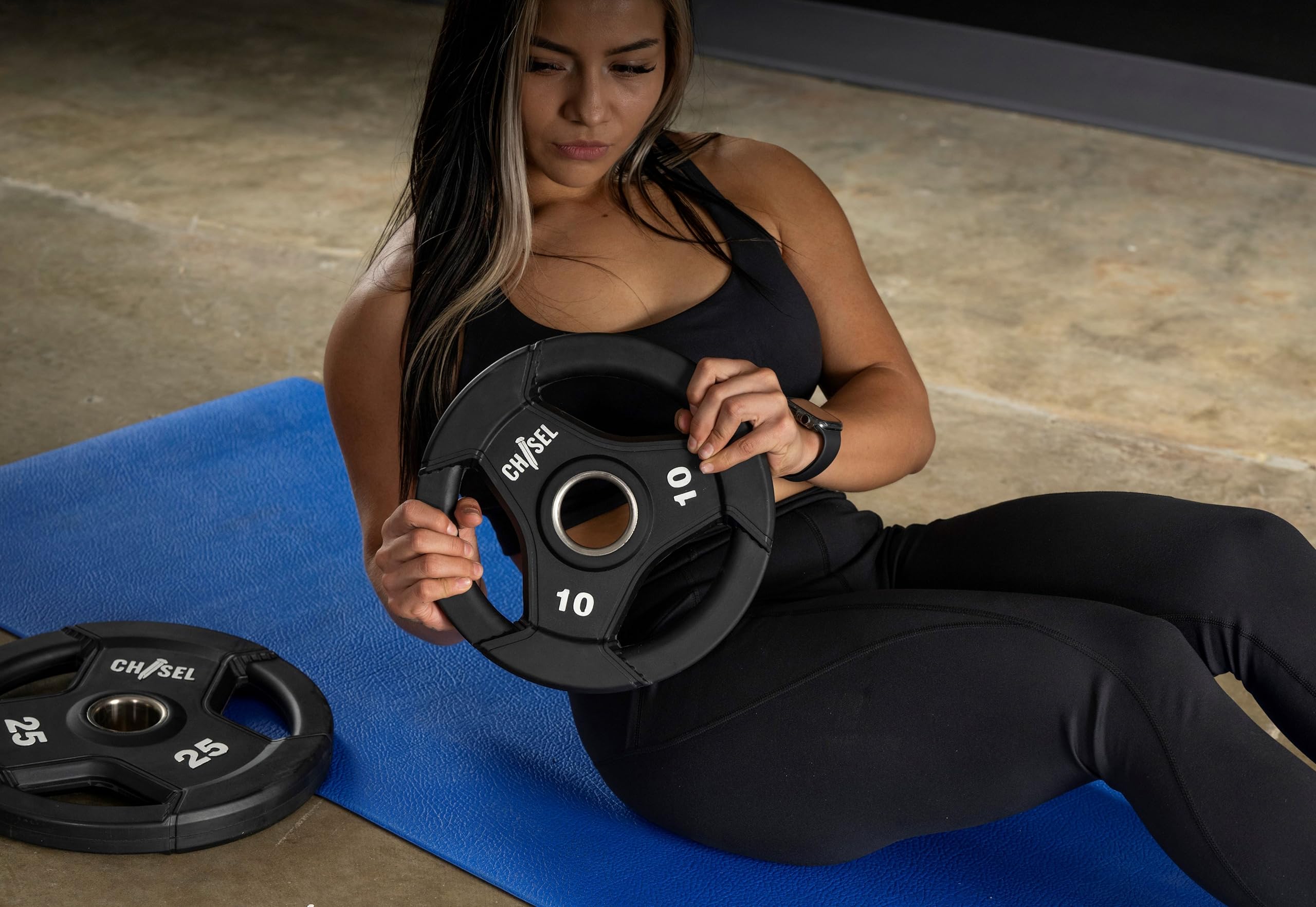 - FUNCTIONALITY: CHISEL weights can be used with a 2 inch Olympic weight bar or individually for core workouts such a front raise, weighted situp, weighted hip thrust and more.